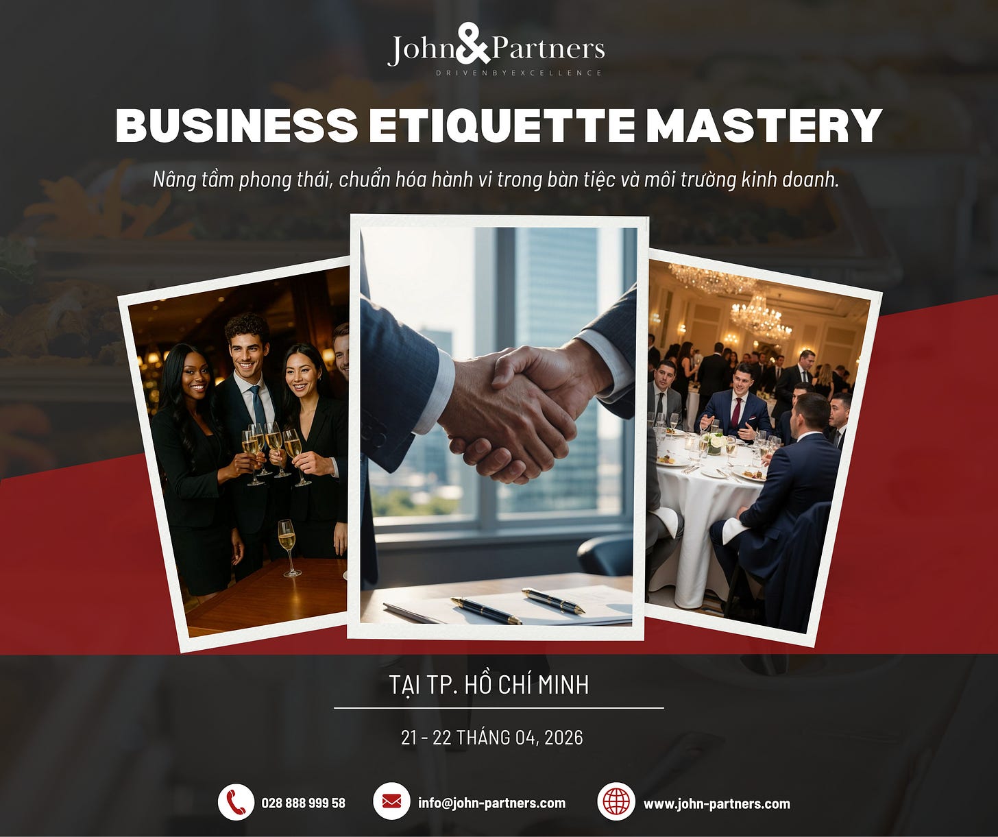 🎯 Business Etiquette Mastery tại John&Partners được thiết kế dành cho những lãnh đạo muốn nâng cấp hình ảnh một cách bài bản: