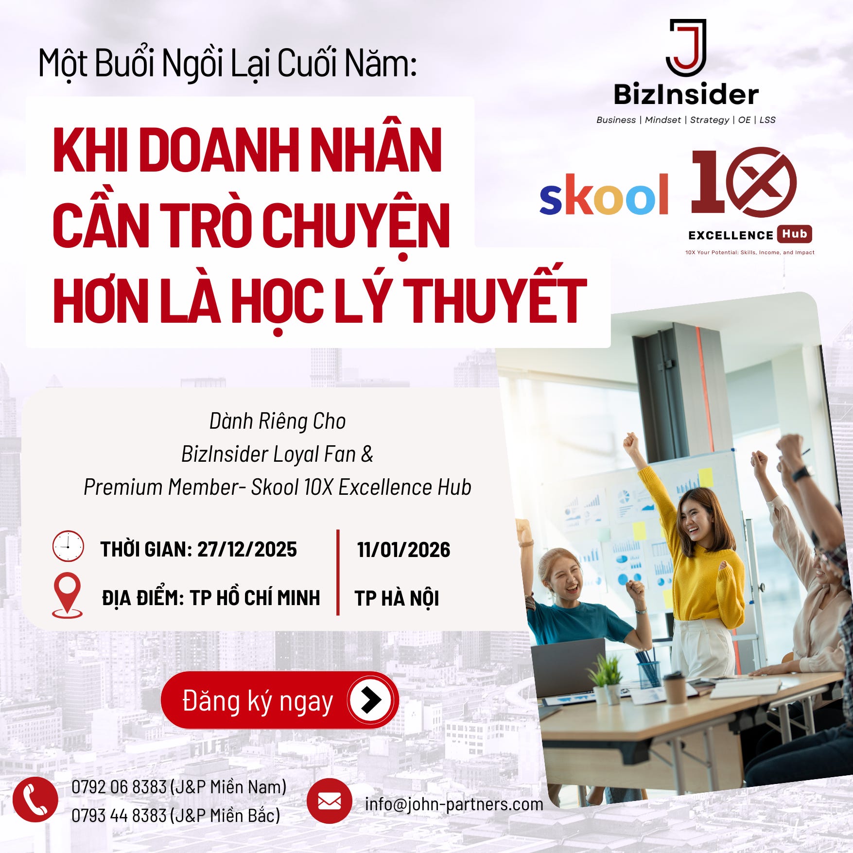 On December 27, 2025 in Ho Chi Minh City and January 11, 2026 in Hanoi, BizInsider is hosting an intimate year-end meet-up, exclusively for BizInsider Loyal Fans and Premium Members of Skool 10X Excellence Hub, together with Dr. Ngo Cong Truong.