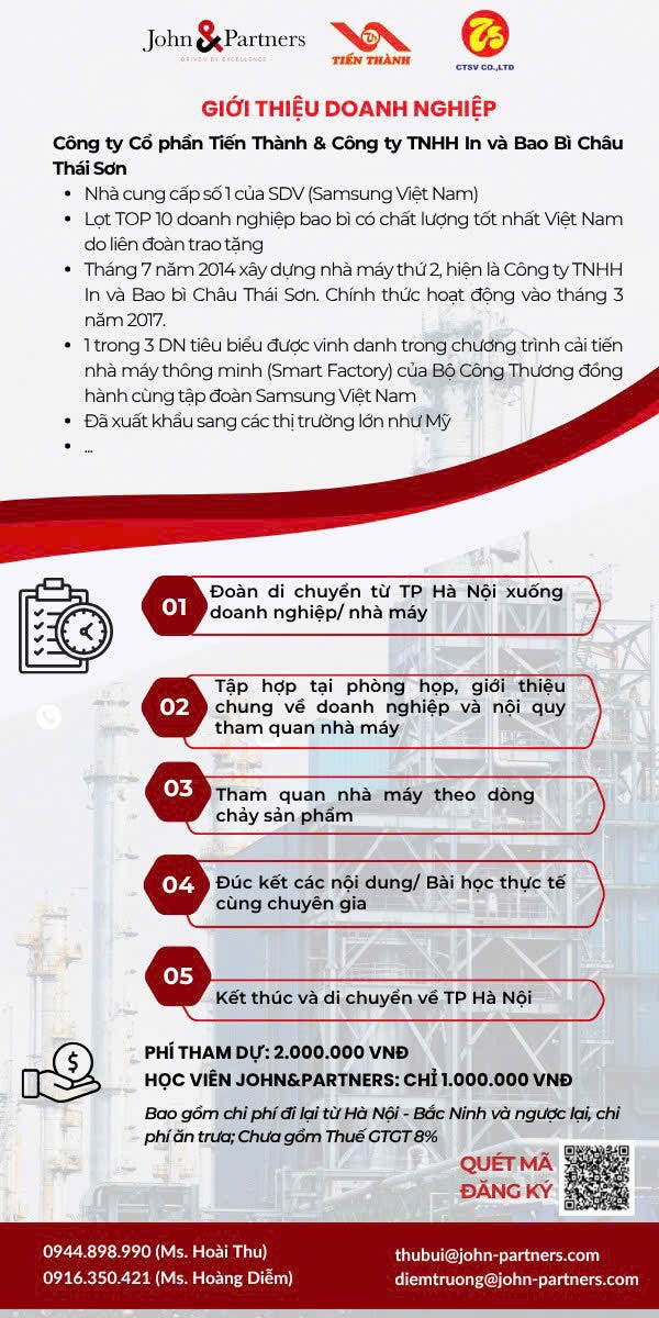 💡 Hãy cùng chúng tôi tham gia chuyến Industrial Tour đến thăm quan & học hỏi tại: Công ty Cổ phần Tiến Thành & Công ty TNHH In và Bao bì Châu Thái Sơn