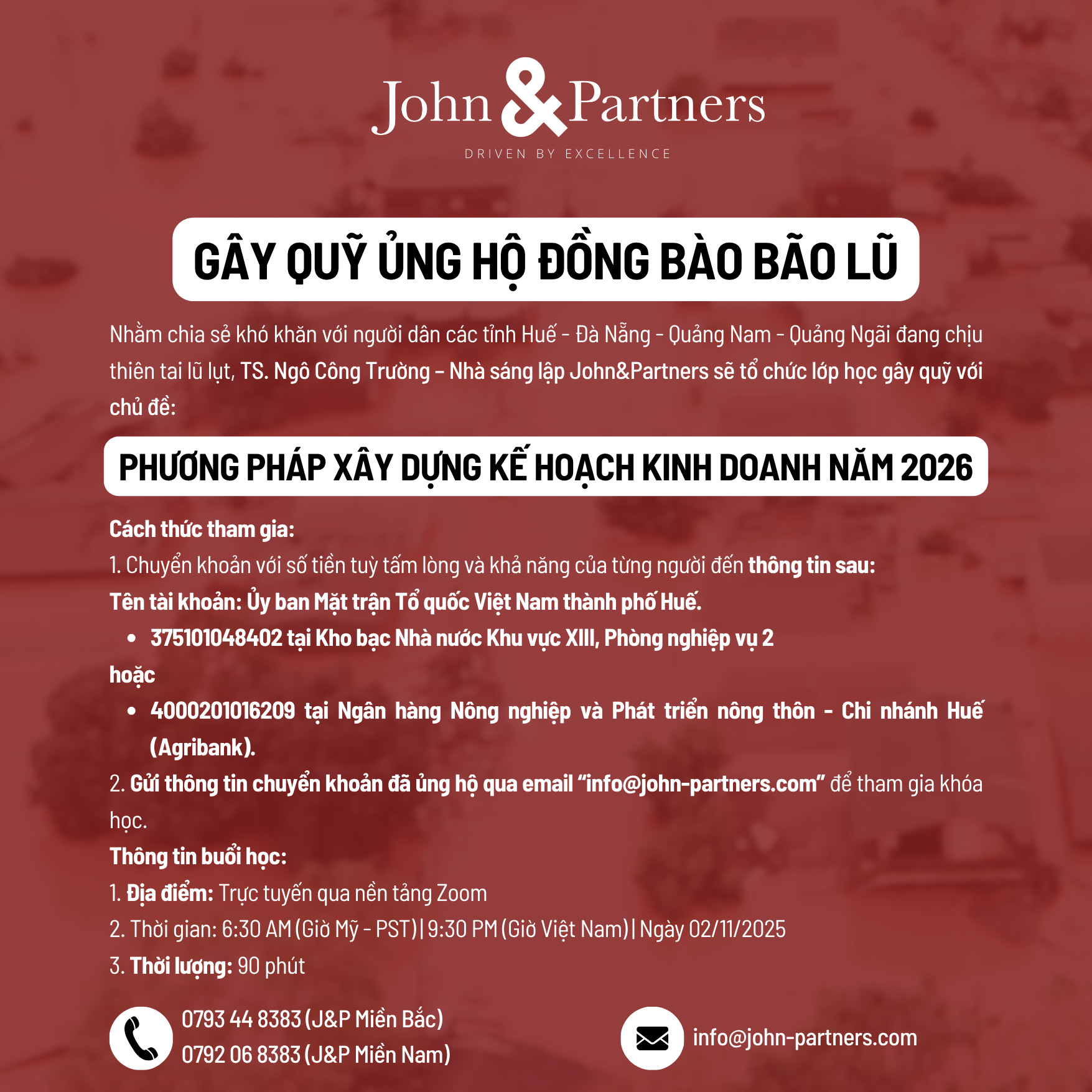 Những ngày này, đồng bào miền Trung đang gồng mình trước thiên tai lũ lụt. John&Partners kêu gọi cộng đồng cùng góp sức—mỗi sự ủng hộ, dù nhỏ, đều là nguồn lực lớn giúp bà con sớm vượt qua khó khăn.