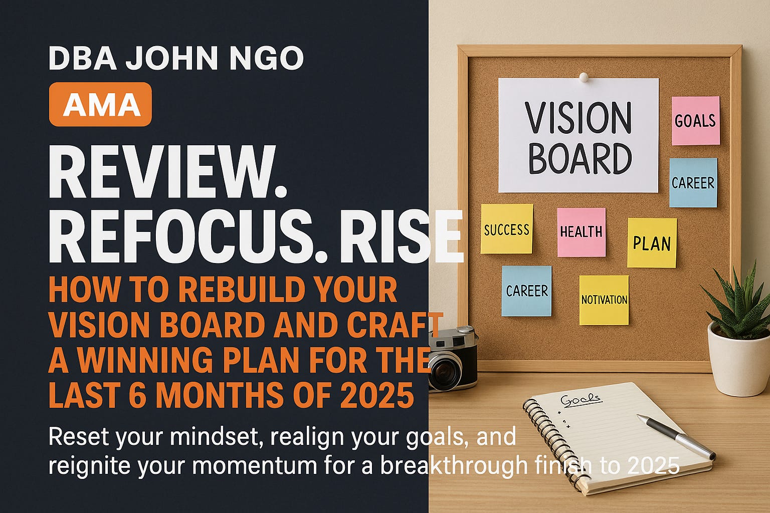 The main topic is “Review. Refocus. Rise: How to Rebuild Your Vision Board and Craft a Winning Plan for the Last 6 Months of 2025?”. If we have more time, we will use it for AMA - Ask Me Anything directly with Host DBA John Ngo.
