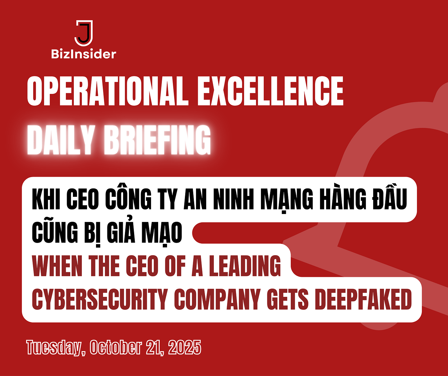 Điểm Tin Operational Excellence (OPEX) Mỗi Ngày – Thứ Ba, Ngày 21/10/2025: Khi CEO Công Ty An Ninh Mạng Hàng Đầu Cũng Bị Giả Mạo: Bài Học OPEX Từ Sự Cố Deepfake Darktrace.