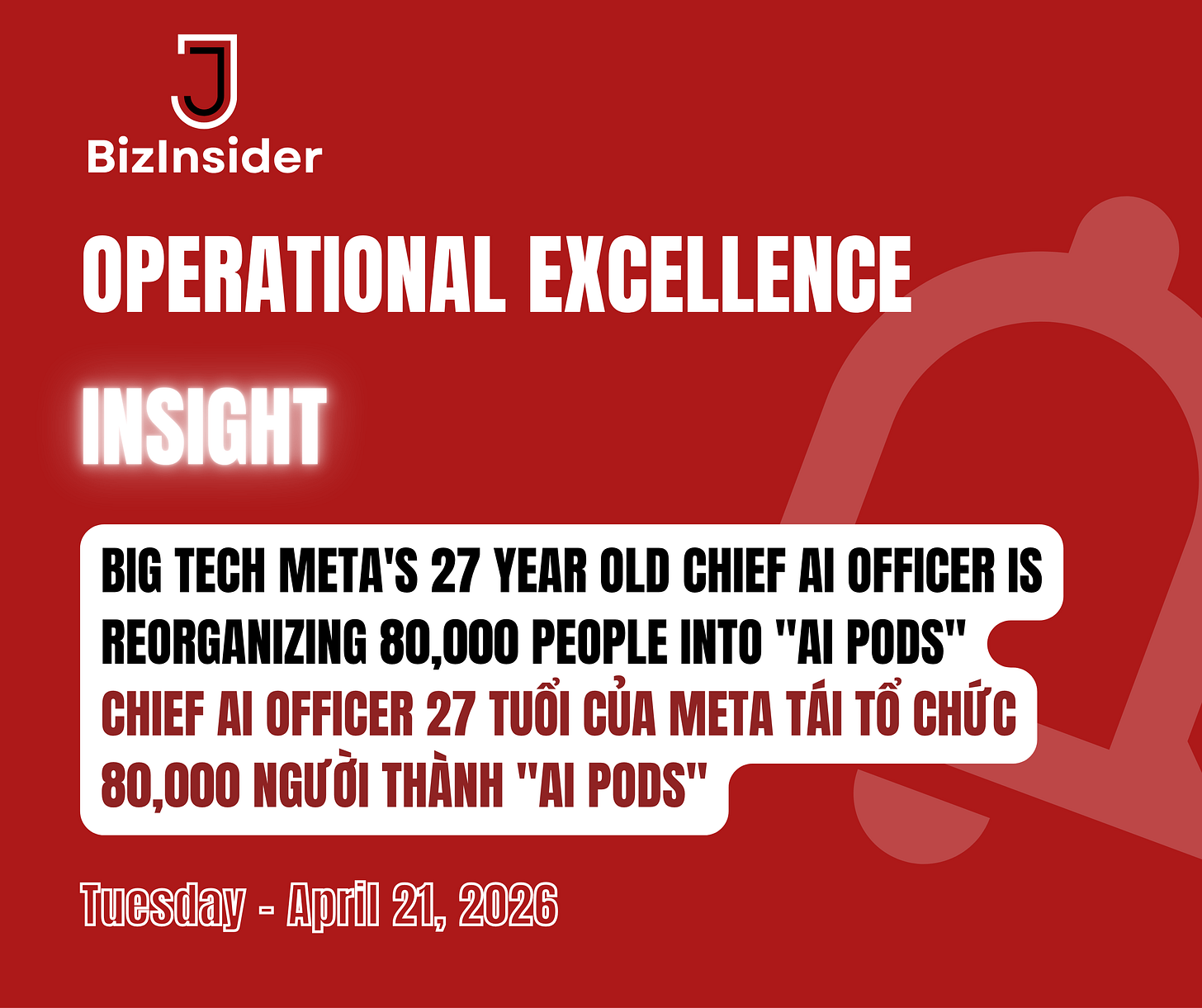 Góc Nhìn Vận Hành Xuất Sắc – Thứ Ba, Ngày 21/04/2026: Chief AI Officer 27 Tuổi Của Meta Tái Tổ Chức 80,000 Người Thành "AI Pods".