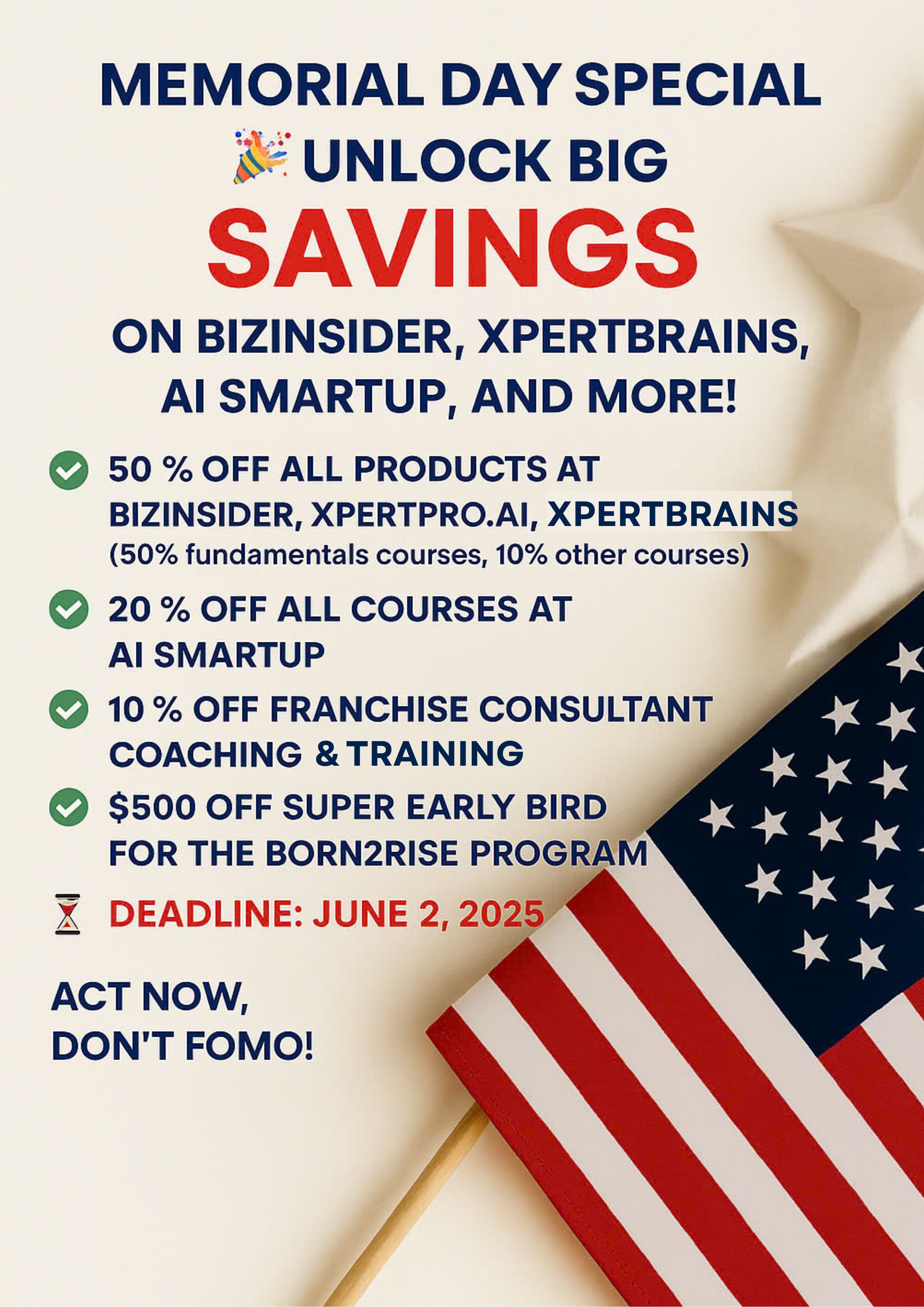 [Reminder and last call of promotion] BizInsiderMemorial Day Special: Unlock Big Savings on BizInsider, XpertBrains, AI SMARTUP, and More!