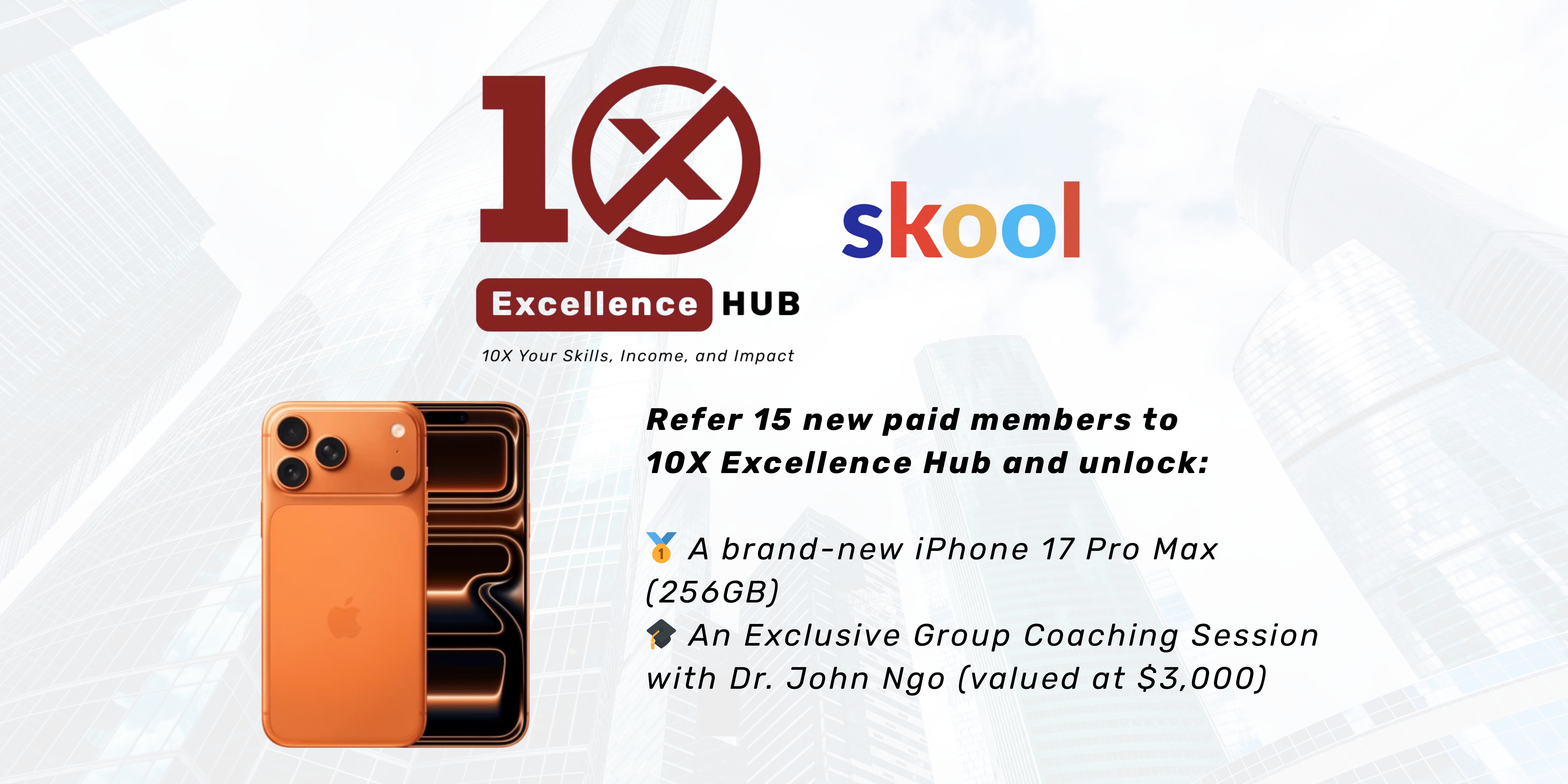 🎮 Mini Game (~$4,200 reward): Refer 15 friends → chance to win iPhone 17 Pro Max (256GB) + Group Coaching with DBA John Ngo